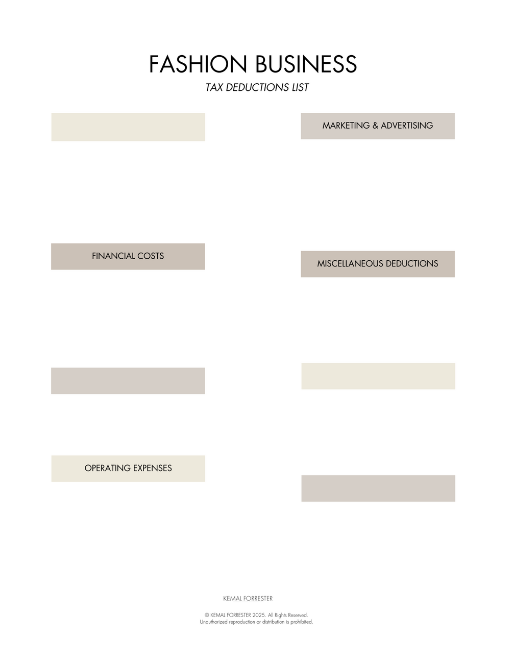 A clear, easy-to-follow checklist of tax deductions tailored specifically for fashion professionals. Plus, it’s been reviewed and approved by an enrolled agent from a top Manhattan tax consultancy—so you can trust every line item.